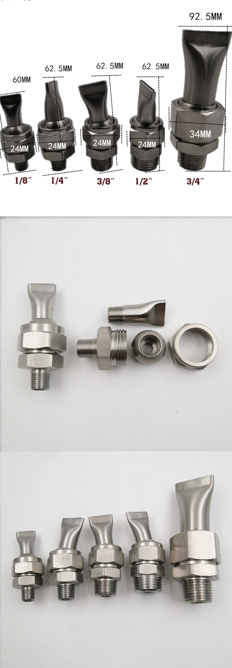 Vòi thổi có thể phun ra luồng khí nén có tác động lớn, hình cánh quạt. Vật liệu được làm bằng nhựa PP, được thiết kế cho các ứng dụng làm mát, sấy khô và thổi trong băng tải, Hàng vòi phun cố định có thể cung cấp một bức màn không khí hiệu quả.