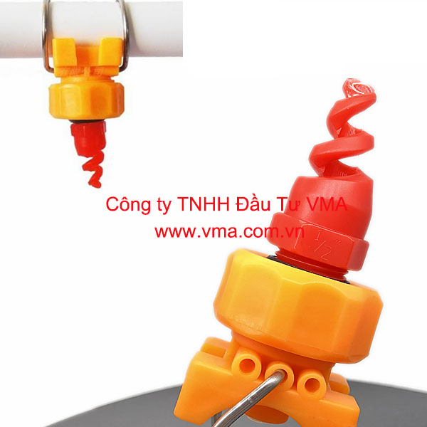 Béc phun nước kẹp đường ống đầu phun xoắn ốc bằng nhựa sử dụng hiểu quả cao, góc phun lớn để ngăn ngừa tắc nghẽn. Vòi phun cung cấp ba chế độ phun: hình nón rỗng, hình nón đặc và quạt. Kiểu kết nối kẹp đường ống chỉ cần khoan lỗ nhỏ trong ống dẫn nước sau đó phần kim loại được sử dụng để kẹp ống dẫn nước.